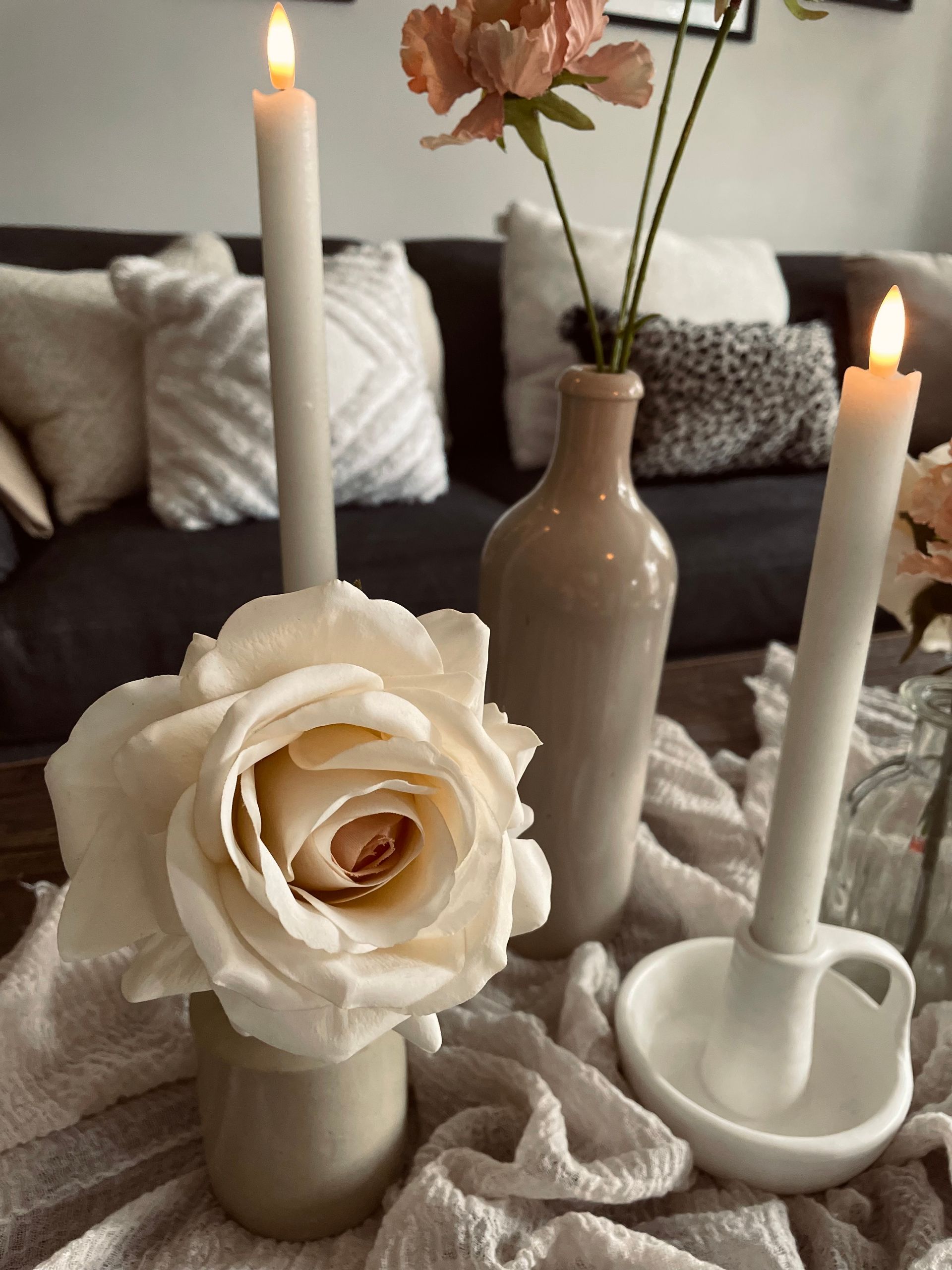 Filled Bottles/Vases opt 3 - Dried Neutral & Single Stem Real Touch Roses